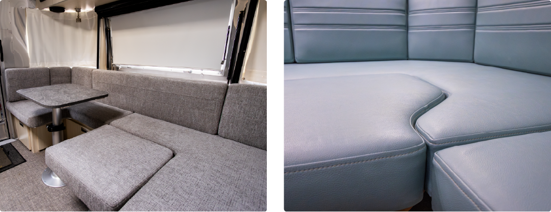 Now's the perfect time to upgrade your Airstream's upholstery. At Ultimate Airstreams, we make it easy to transform your interior with the highest-quality materials and expert craftsmanship, designed specifically for life on the road. No more sinking down to plywood on factory foam. Imagine all-day comfort, better support, and a custom look that finally matches how you use your Airstream. Our project designers work with you one-on-one to personalize your comfort and style-from foam selection to fabric choices-so your upholstery feels as good as it looks.Limited-Time Offer!